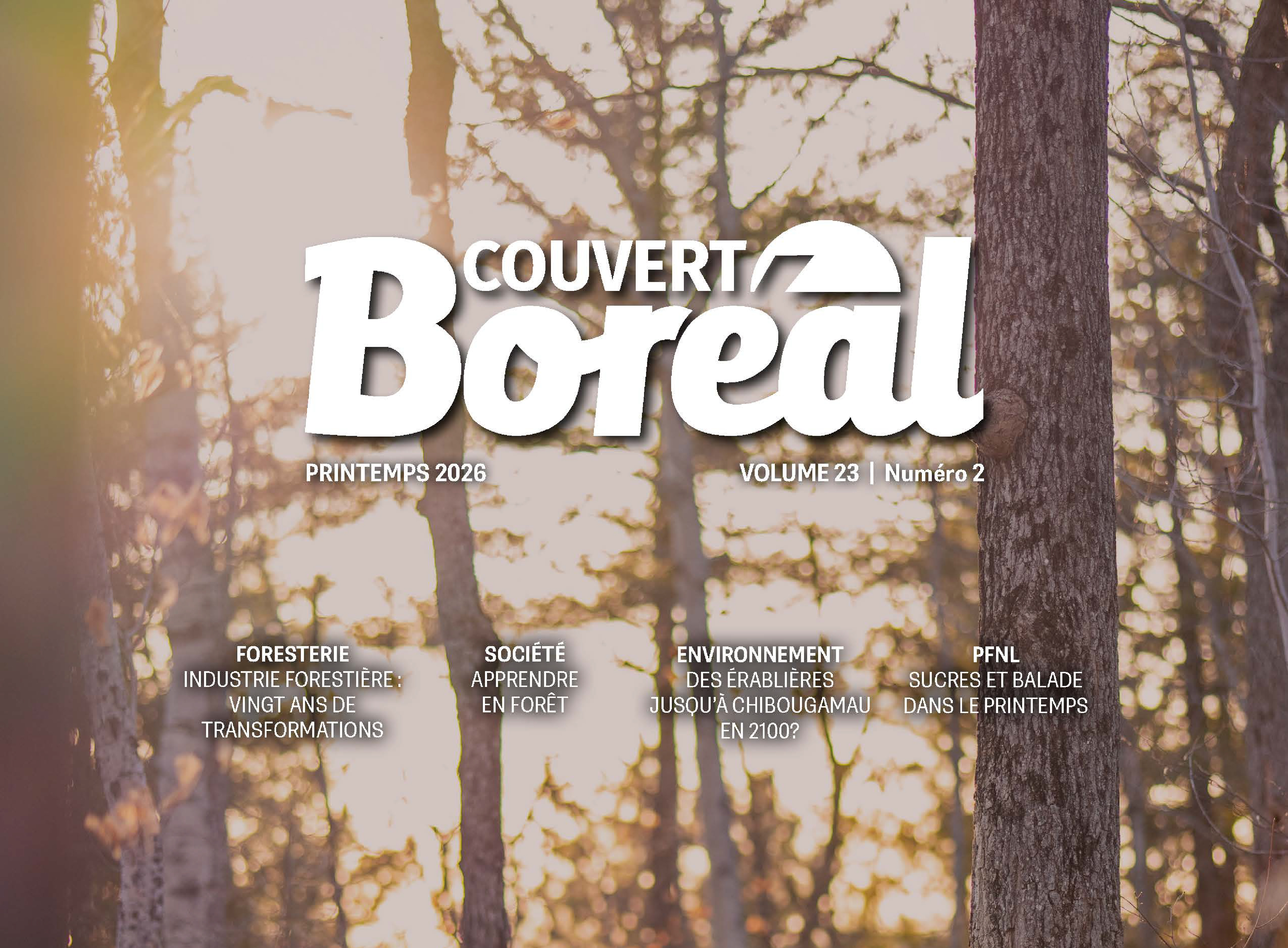 L’édition de printemps du Couvert Boréal (Printemps 2026) est maintenant en ligne. Ce nouveau numéro propose un regard actuel et nuancé sur la forêt boréale, à l’heure des transitions écologiques, sociales et territoriales.